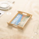 This is a well made, sturdy wooden tray with a flawless black finish and lovely map on the tray surface. It is both vintage & modern at the same time. Looks exactly like the photo; does not disappoint. So nice to find something of quality individually made and not the mass-produced 'shabby chic' merchandise seen in stores. I am so pleased to be able to give this to my college-age niece for her birthday. This can be used as a tray to hold jewelry or toiletries, or hung on the wall as art. The map surface is sealed (it is slightly shiny) so would be moisture resistant. It is well worth the asking price but I was able to apply a sale code as well. Very happy with my purchase. Map is crisp & clear and sealed with a water-resitant finish.