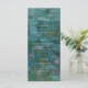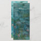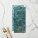 Modern wedding menu with minimalist monogram typography and Claude Monet Water Lilies painting background.