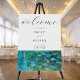 Elegant modern acrylic wedding welcome sign featuring Claude Monet Water Lilies painting.
