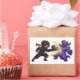 The color palette is perfectly calibrated for maximum visual impact: deep black and bold red for the ninja communicates stealth and danger, while the vivid purple of the monster creates a striking contrast that makes the golden impact explosion pop brilliantly. This is the kind of color story that looks stunning on a black t-shirt, a phone case, a gaming laptop sticker, or any dark surface.
