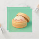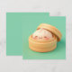 This adorable design features a happy little steamed dumpling with a sweet, smiling face and rosy cheeks. Rendered in a high-quality 3D clay style, the dumpling has a smooth, doughy texture and sits snugly inside a light brown bamboo steamer basket with an open lid. Set against a clean, solid mint green background, the minimalist and "kawaii" aesthetic creates a charming food-themed scene that is perfect for anyone who loves dim sum or cute character art. This cheerful dumpling postcard is a wonderful choice for sending a "dim sum-body loves you" note or a playful greeting to a foodie friend. You might choose to use this cute food card for a Lunar New Year celebration invitation or to announce a fun dinner party with family members. It also makes a precious decorative piece for a kitchen wall or a bright addition to a recipe book as a small token of happiness. This versatile design is also an excellent choice for Asian cuisine event announcements, cooking class invites, or as a heartwarming way to share a short message of joy for any situation or event.
