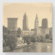 Sepia Cleveland river view skyline featured on stone coaster. Sturdy classic barware adds a fun aspect to any bar!