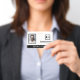 Office employee badge with a clean minimalist design in black and white. Add a photo of the employee along with name and profession. Personalize further with your business logo and the name of the company.