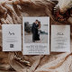Modern wedding program featuring a minimal black and white design with your favorite photo on the front. The back has your order of ceremony, wedding party and thank you message in a combination of simple sans serif fonts and an elegant script. This chic program is great for any style of wedding.