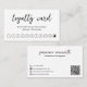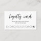 Modern loyalty card featuring a simple and minimal black and white design with "loyalty card" in an elegant script along with ten stamps. The back has your contact info, social media icons and QR code. You may remove the QR code and add / change the icons in the design editing tool. These mimimal loyalty cards are great for a lash technician, hair stylist, nail salon and more.