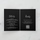 Modern photo wedding folded invitation featuring a minimal design with your favorite picture over a black background. Below are your event details in a combination of simple sans serif fonts and an elegant script. Add your own QR code to the RSVP panel or remove it in the design editing tool. This chic invitation would be great for a goth themed or Halloween wedding.