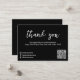 Modern discount card featuring a simple and minimal black design with "thank you" in an elegant script. Below are your social media icons and optional qr code. You may remove the qr code and change, add or remove the icons in the design editing tool. These mimimal discount cards are great for any business with handmade items or online orders.
