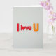 This card shows the words “I love U” centered on a light gray background with a faint texture. The letters look raised, like small 3D shapes, and they cast soft shadows that make them feel real. “I” and the letters “l,” “v,” and “e” are red, and a red heart takes the place of the “o” in “love.” The final “U” is orange, which adds a gentle change in color without distracting from the message. The text has a simple, rounded letter style and sits right in the middle so your eyes go straight to it. It feels meaningful because it says exactly what you want to say, and the heart shape adds a little extra tenderness 🥰. It’s an easy way to show love or close friendship on Valentine’s Day ❤️, and to share Valentine’s Day feelings with someone who matters.