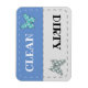 Cute sky blue, black, white, gray clean and dirty dishwasher magnet with turquoise blue polka dot pattern butterflies.