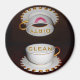Cute clean or dirty dishwasher reminder magnet. Stylish gold and white china cups and saucers. Lipstick lips on the dirty coffee cup.