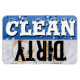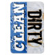 This popular, cute and unique Clean and Dirty kitchen dishwasher magnet design, now made into a large 4"x6" vinyl flexible magnet, with fun blue sparkling bubbles with the word "CLEAN" in white text on one half and a coffee stained napkin is the background with the word "Dirty" in black grungy text on the other half. A nice gift idea for the domestic goddess for her kitchen! The fun solution to the problem of whether the dishes are clean or still dirty and as to when to load or to empty the dishwasher!
