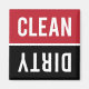 Red, black, and white Clean Dirty Dishwasher magnets. Just reverse or flip the magnet to clean or dirty on the front of the dishwasher to inform your family about the dishes inside. Simple modern design.