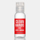 "Clean hands and dirty minds" in bold white print on a vivid red background. This funny hand sanitizer bottle design is perfect to customize for a bachelorette party, a girls trip, college or any silly naughty time.