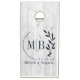 Clean Light Gray Wooden Leaf Wedding Monogram Cornhole Set