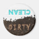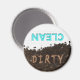 Never question whether the dishes are clean or dirty with this fun dishwasher magnet! Squeaky clean white with blue letters on one side, brown dirt and distressed lettering on the other.