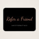 This sleek and stylish design features a black background with a subtle pink accent. The text is written in a modern font, making it perfect for professional businesses looking for a modern, yet sophisticated referral card.