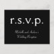 This clean and elegant R.S.V.P. postcard design features the message "r.s.v.p." on the front, along with a personalized event name. It also features a custom RSVP form on the back for the recipient to complete, along with a custom address that the completed RSVP cards would be mailed to. RSVP cards like this might be used to find out who will be attending a graduation party, a wedding reception, a wedding anniversary party, a dinner party, or some other celebration.