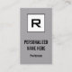 This simple, clean, and respectable business card design features an initial letter, name, profession and contact info that can be customized. It could be used by a professional such as a manager, executive, supervisor or business visionary.