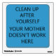 This humorous sign might help keep the office lunchroom tidy.....it's worth a shot! Text reads 'Clean up after yourself, your mother doesn't work here.' Background colour may be changed to any colour that suits your decor.