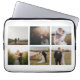 Modern laptop sleeve featuring a simple and minimal white design with a photo collage of six of your favorite wedding pictures. This elegant laptop is perfect for a newlywed bride.