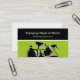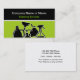 Cleaning service business cards with simple yet powerful design including black, green and white colors, image of cleaning supplies symbol, and eye catching graphic design that stands out and makes a strong first impression. Designed as a business card template for a house cleaning service, housekeeper, or professional cleaning business.