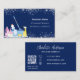 Cleaning service blue silver glitter dust QR code Business Card