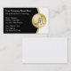 House cleaning service business cards with simulated gold medallion and housekeeper symbol with great text layout you can personalize. Best business cards designed for themes related to maid, house or office cleaning, residential or commercial.