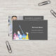 A gray background decorated with cleaning equipment. Personalize and add Your photo, name, text contact info and your own QR code to your website address. White text.