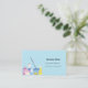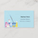 A light blue background decorated with cleaning equipment. Personalize and add Your photo, name, text contact info and your own QR code to your website address. Black text.