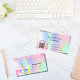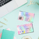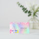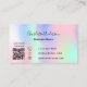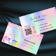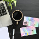 An elegant and glamorous business card on holographic background, pink, purple, mint green decorated with pink confetti on front and cleaning equipment. Personalize and add Your name, text contact info and your own QR code to your website address.