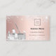 An elegant and glamorous business card on a blush, rose gold faux metallic looking background decorated with faux silver glitter dust on front and cleaning equipment. Personalize and add Your business logo, name, text contact info and your own QR code to your website address.