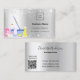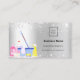 An elegant and glamorous business card on a faux silver looking background decorated with faux glitter dust on front and cleaning equipment. Personalize and add Your business logo, name, text contact info and your own QR code to your website address.