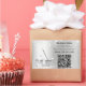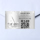 An elegant and glamorous business sticker on a faux silver looking background decorated with faux silver glitter dust and cleaning equipment. Personalize and add Your name, text, contact info and your own url to your website or your social media account to the QR code.