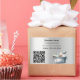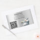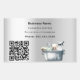 An elegant and glamorous business sticker on a faux silver looking background decorated with cleaning equipment. Personalize and add Your name, text, contact info and your own url to your website or your social media account to the QR code.