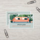 A modern, simple and elegant business card design for a cleaning and housekeeping services business. It features a retro chic illustration of a modern couch, with lush house plants on each side, in a teal and orange color scheme. This photo business card is perfect for house cleaning services, housekeeping, maid services, janitorial services, or upholstery cleaning.
