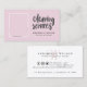 Modern photo business card designed for a commercial or residential services for cleaning, housekeeper, maid service, or janitorial supplies. Design featuring of single photo, typography script ''cleaning services'' in dark gray color, name and text line on the front. Customize the back with your full contact details and social media details.