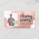 Modern photo business card designed for a commercial or residential services for cleaning, housekeeper, maid service, or janitorial supplies. Design featuring of single photo, typography script ''cleaning services'' in dark gray color, name and text line on the front. Customize the back with your full contact details and social media details.
