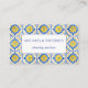 Imagine handing someone this cleverly designed business card. This has a pattern of blue and yellow tiles. Ideal for a business that offers cleaning services. The front is simple with the name and the service being offered. The reverse is where the magic happens. You have space to list your attributes or the skills or jobs you undertake. There is a place for two phone numbers and below is the QR code to link to your website or even a social media page for your business. At the top will be your call to action. Encourage your customer to make contact either by phone, or via the link. This pattern is reminiscent of a Mediterranean tiled home. So Fresh and bright. The text is in a complimentary color of blue as is the QR code.