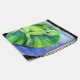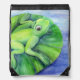 A frog (symbol of cleansing, replenishing, adapting, and good fortune) sits on a lily pad and looks at the viewer.
