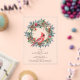 An elegant red cardinal nestled in a winter greenery wreath invites guests to your winter or Christmas birthday party. The watercolor design features a beautiful cardinal and a pine wreath decorated with red flowers and berries along with pine cones.