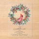 An elegant red cardinal nestled in a winter greenery wreath invites guests to your winter or Christmas birthday party. The watercolor design features a beautiful cardinal and a pine wreath decorated with red flowers and berries along with pine cones.