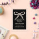 Elegant black and white clear acrylic invitation features large white pearl script bow on a black background. The black background is pulled in, so your guests can see the acrylic transparency around the edge. This is one of the hottest invitation trends this season. Calligraphy adds a special touch. All text is editable.