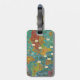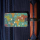 The tiny travel icons are secured by elegant luggage tags, crafted from light cream or light blue acrylic. These tags add a touch of sophistication, their smooth surface contrasting with the vibrant map and playful icons. Each tag may vary slightly in shape, echoing the continents they represent.