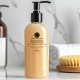 This elegant editable cosmetics label measures 3 inches by 3 inches (76 mm by 76 mm) and is waterproof. It has a clear background with black text and has space for your company name, product name, ingredients, product description, and business contact information. This label is designed for 8 ounce (240 ml) or large bottles for shaving foams, cleansing foams, lotions, liquid soap, shampoo, hair conditioner, hair and body oils, bubble bath, shower gel, and other products that require a waterproof label.