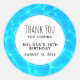 Birthday / event thank you stickers with a photograph of clear blue pool water, with shimmering reflections. A white circle layered over top with your text inside.