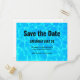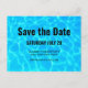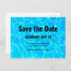 Save the date party postcard with a photograph of clear blue pool water, with shimmering reflections.