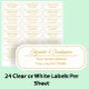 A set of laser cut, transparent return address labels on clear self-adhesive stickers with printed gold colored typography (not metallic.) Perfect for adding a minimalist return address to wedding invitations and other correspondence that use white or black envelopes. Customize the couples' names and address information using the editor in the listing.