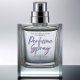 A transparent label for bottles featuring the words "Perfume Spray" in holographic glitter and space for your company name, product scent, and product size.