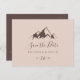 This clear mountain country horizontal save the date postcard is perfect for a rustic wedding. The design features an idyllic watercolor brown mountain.