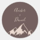 These clear mountain country wedding envelope seals are perfect for a rustic wedding. The design features an idyllic watercolor beige mountain.